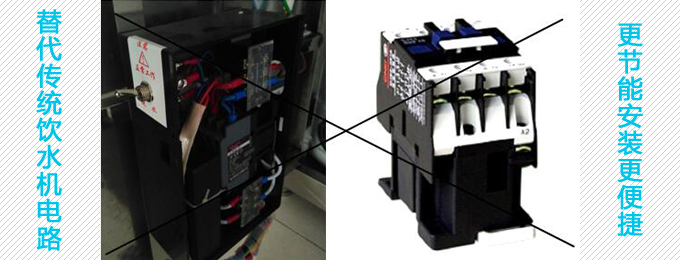 (传统控制器使用安装时要手动拨控制开关到进水位,等进水完成后才可以拨到工作状态,容易误操作造成饮水机烧坏,安全防护单一,空气开关开放式触点,容易氧化,使用寿命短)