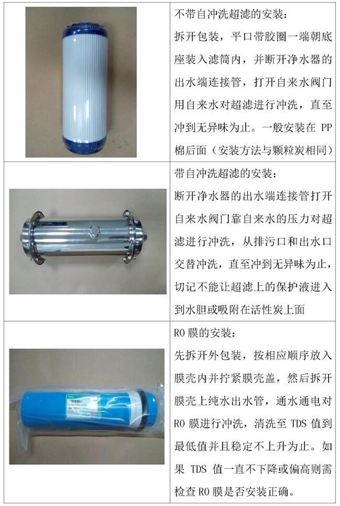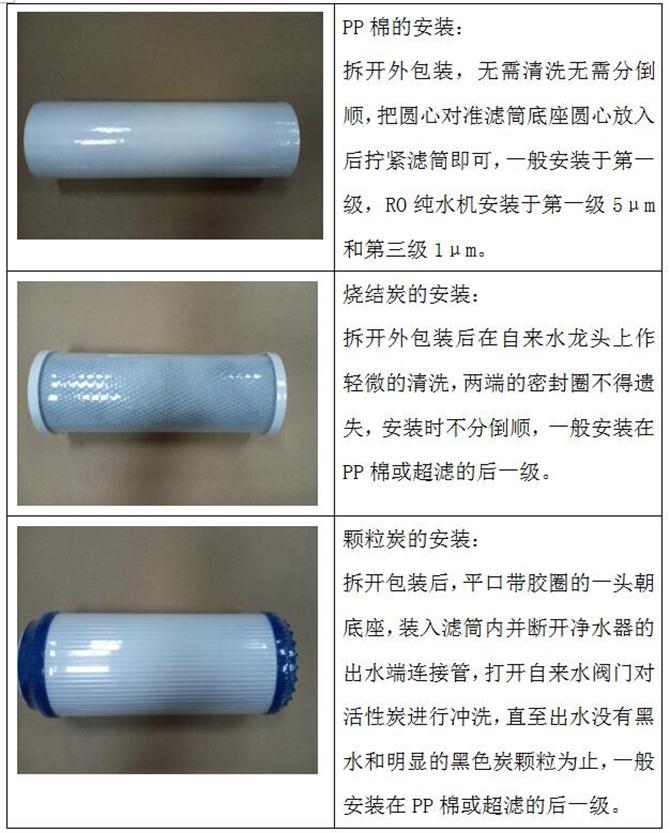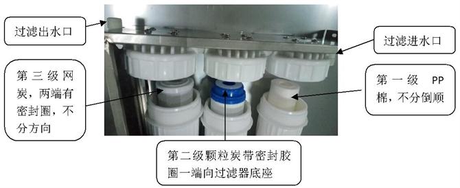 6、滤芯的安装(所需安装的滤芯都在配件箱里面)
