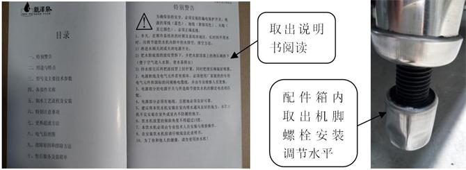 5.2 打开饮水设备包装箱,取出里面的配件箱并打开,从中拿出【使用说明书】仔细阅读并理解后方可进行安装。